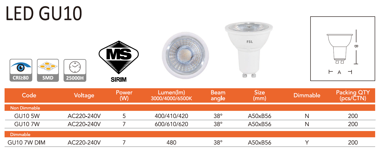 View more about FSL GU10 LED SPOTLIGHT BULB on main site